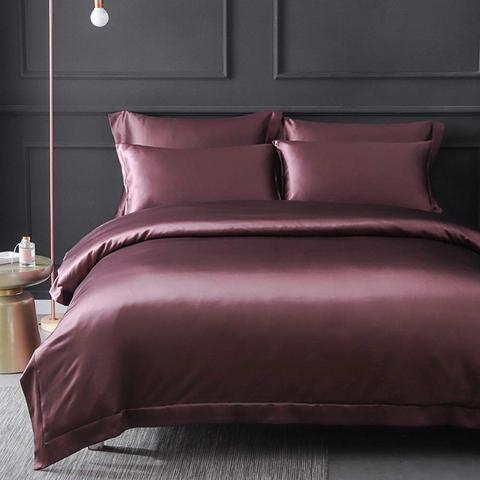 ผ้าคลุมเตียงผ้าไหมหรูหรา 4 ชิ้นชุดผ้าปูที่นอนผ้าไหมชุดเครื่องนอน
